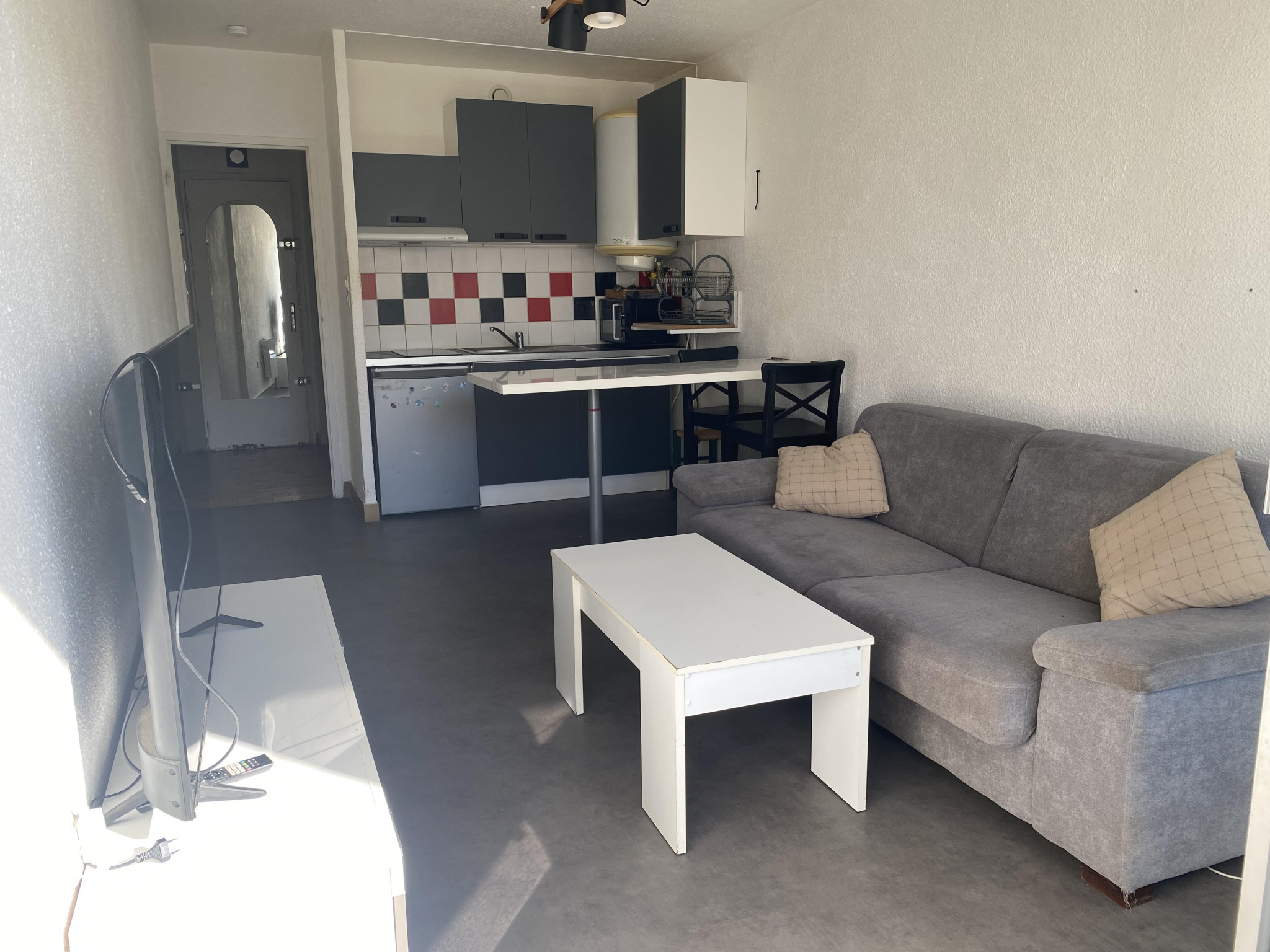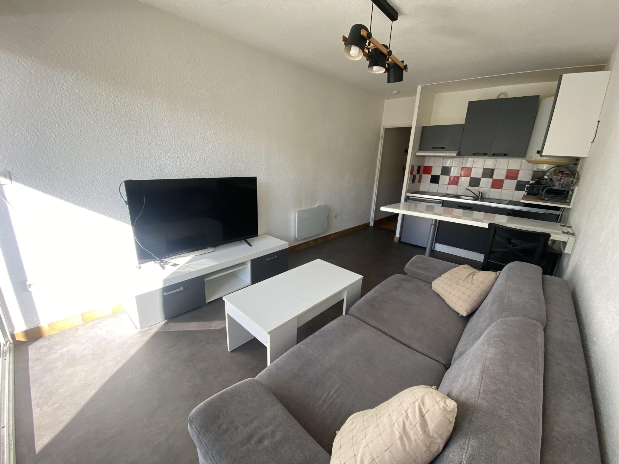 Charmant studio meublé, idéalement situé, composé d’une salle d’eau avec WC, d’une kitchenette équipée, et d’un séjour lumineux offrant un espace de vie agréable au quotidien.