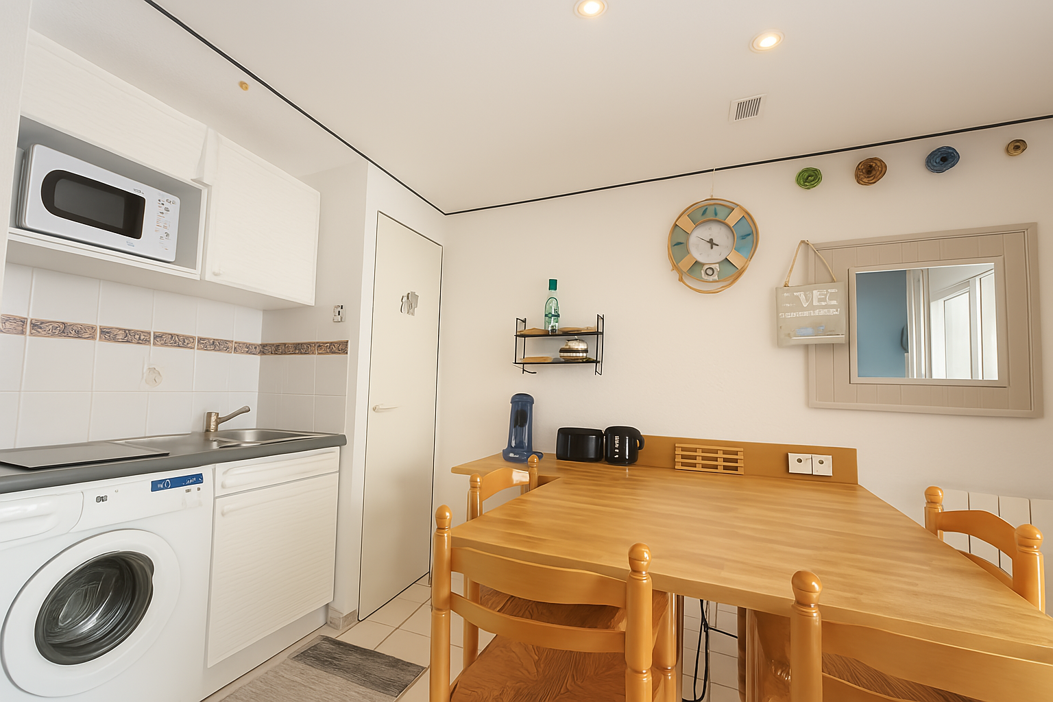 Un extérieur d’environ 30 m², sans vis-à-vis et protégé du vent — un critère extrêmement recherché en location saisonnière et fortement différenciant sur le secteur.